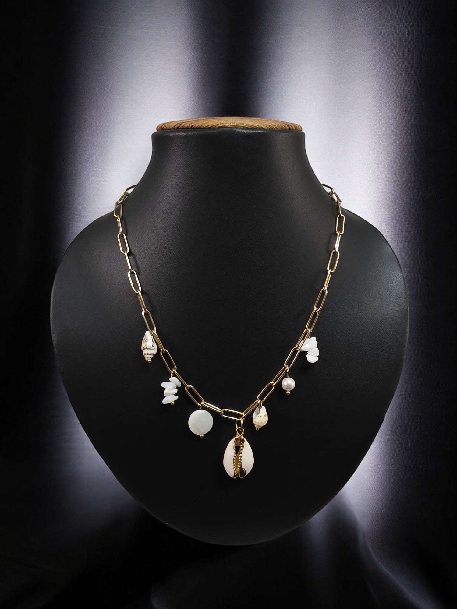 Elegance meets earthiness in Ivory Tide — a waterproof charm chain featuring creamy whites and natural textures. From cowrie shells to tiny beads, every charm adds to its coastal-cool charm. Perfect for layering or standing solo in the spotlight.