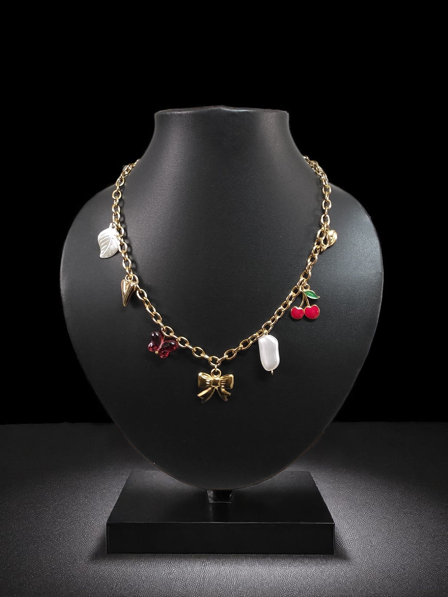 A playful mix of elegance and expression — the Playful Gleam features a gold-toned waterproof base with a delightful curation of charms like bow, butterfly, heart, cherry and more. Whether you're feeling sweet, bold, or dreamy, this chain moves with your mood — and resists tarnish like a true icon.