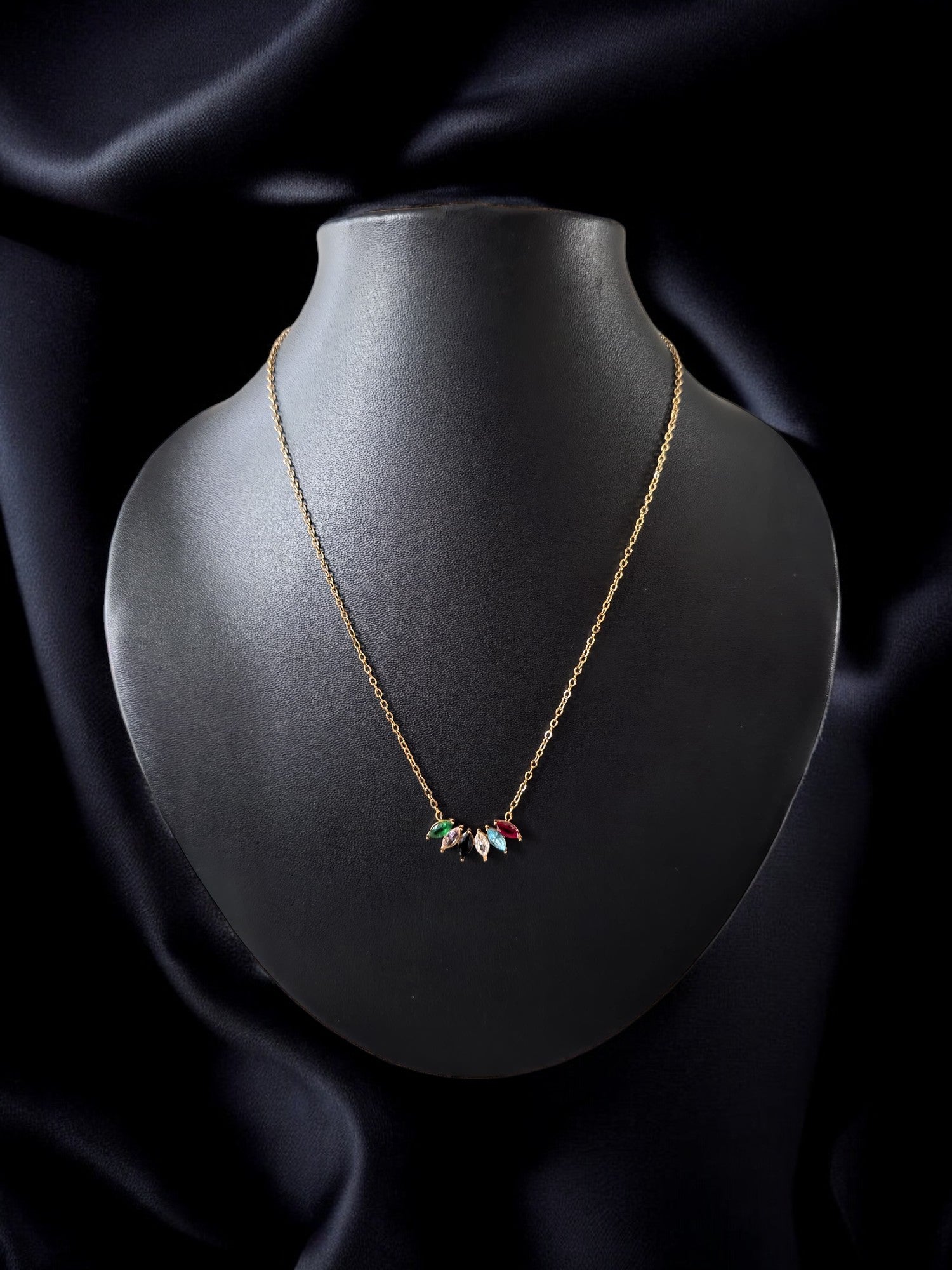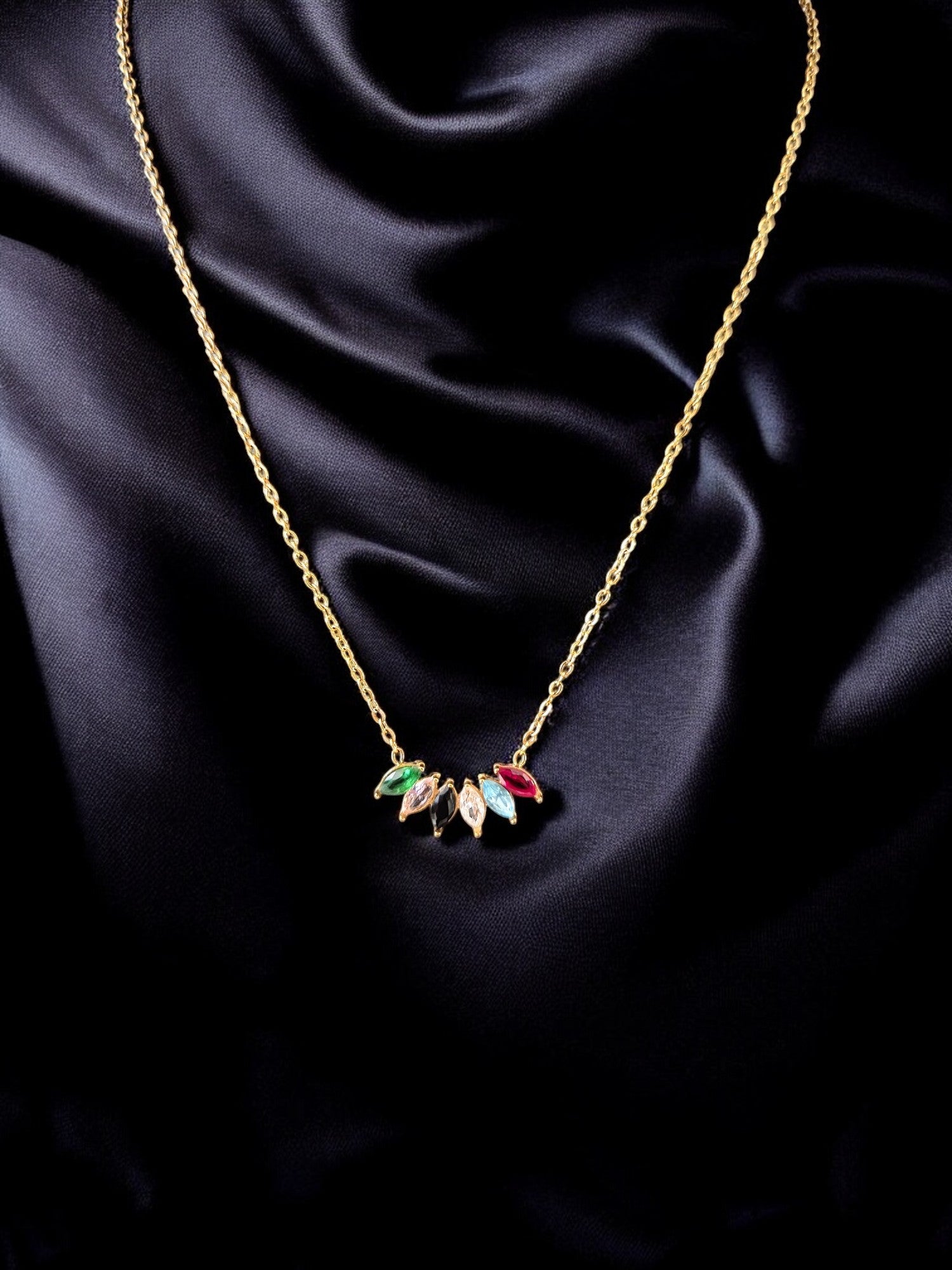 Description: Prism Glow radiates joy and brilliance with its multicolored diamond pendant. Set on a fine gold chain, each hue reflects light and mood — making this piece a celebration of individuality and color.