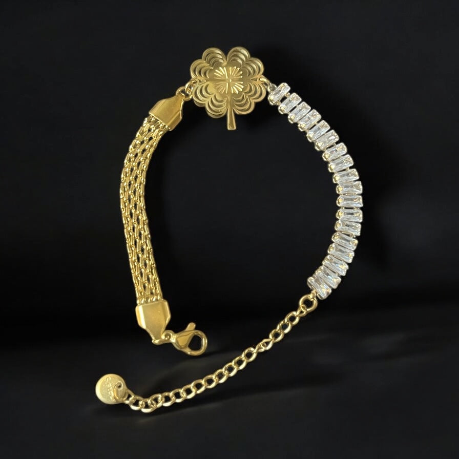 Description: A powerful blend of shimmering diamonds and bold chain links, centered with a tree charm symbolizing growth, strength, and grounding energy.