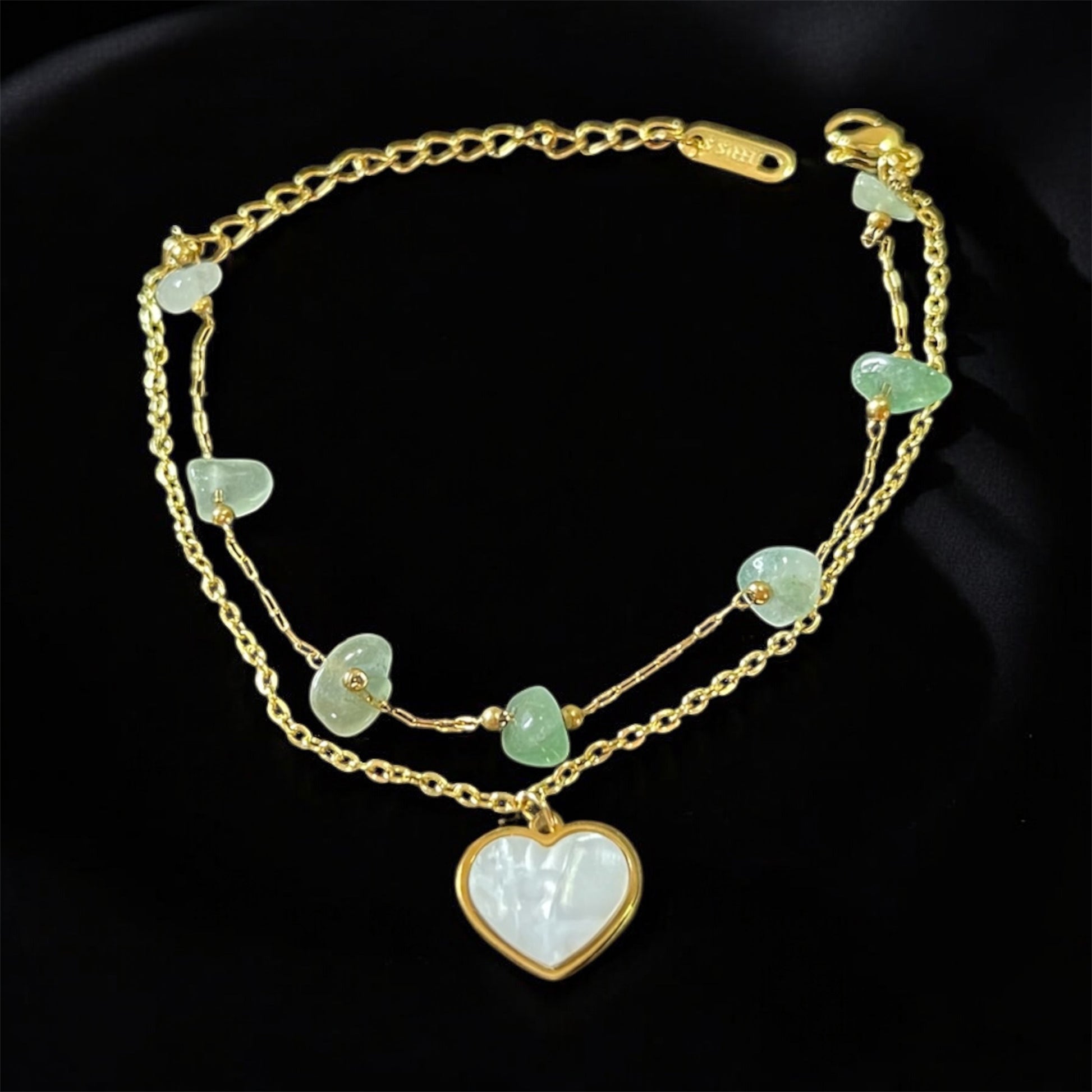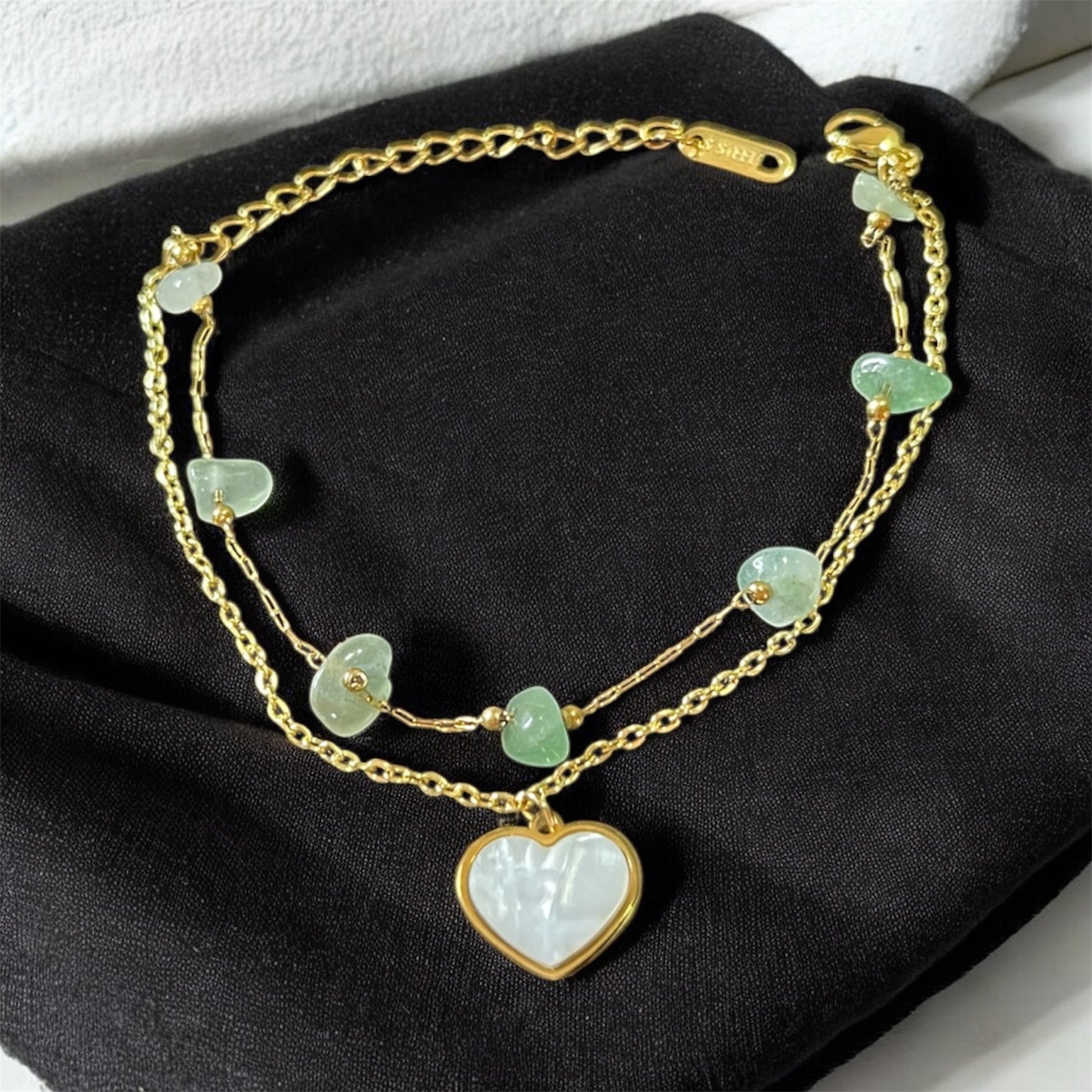 Description: Sea Heart is a delicate two-layer bracelet inspired by ocean serenity and love. One layer features soothing sea green stones, while the other holds a dainty heart charm—symbolizing calm, connection, and coastal charm. Water-resistant and perfect for everyday romance.