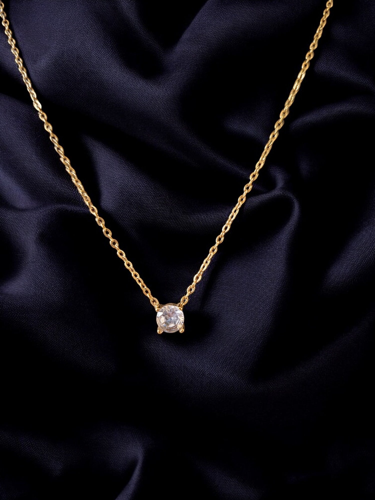 Description: A whisper of brilliance. Solo Spark features a single, beautifully set diamond-like charm on a fine chain — capturing the essence of understated luxury. It's the piece you never take off — light, timeless, and made to glow with you.