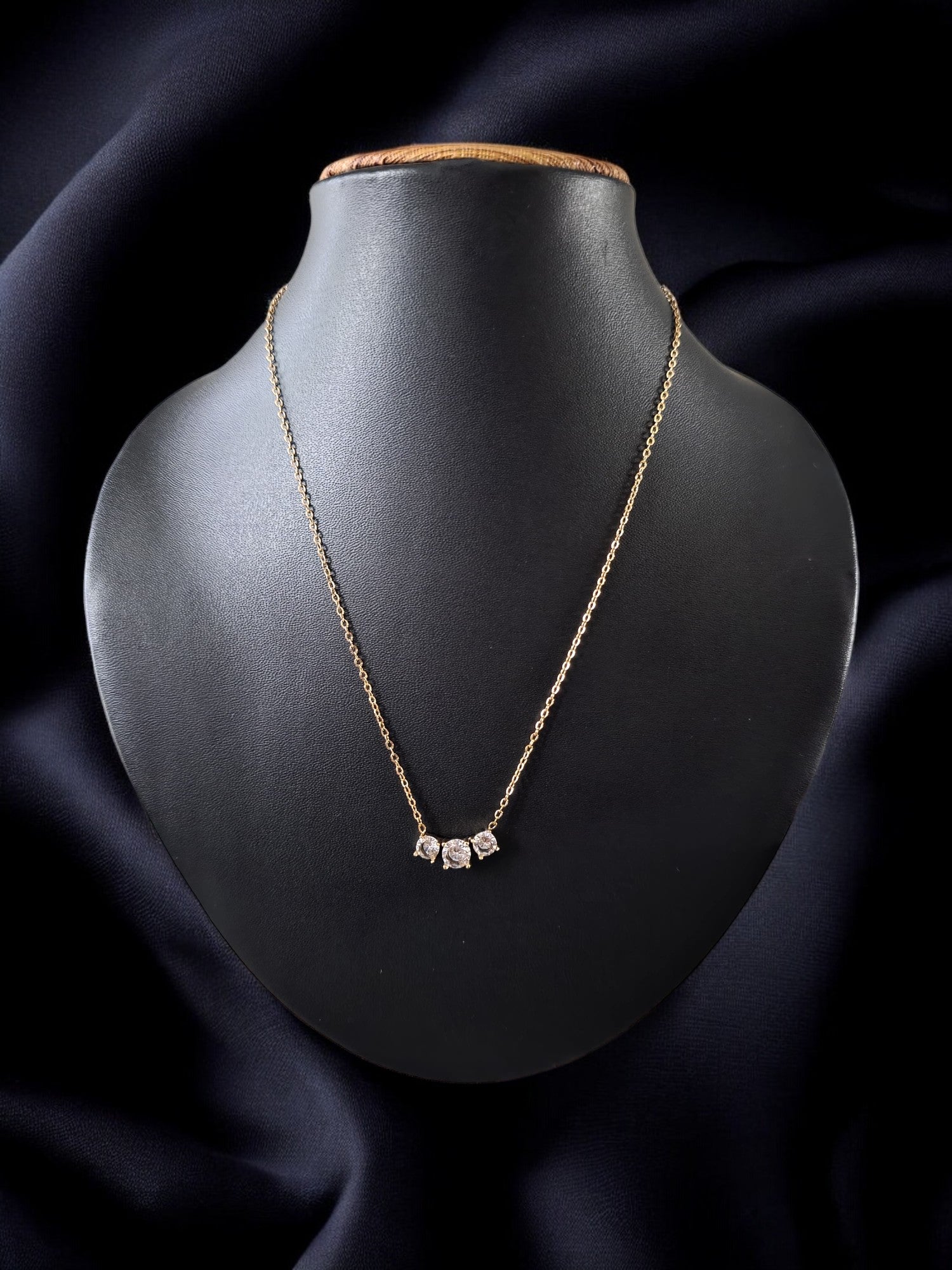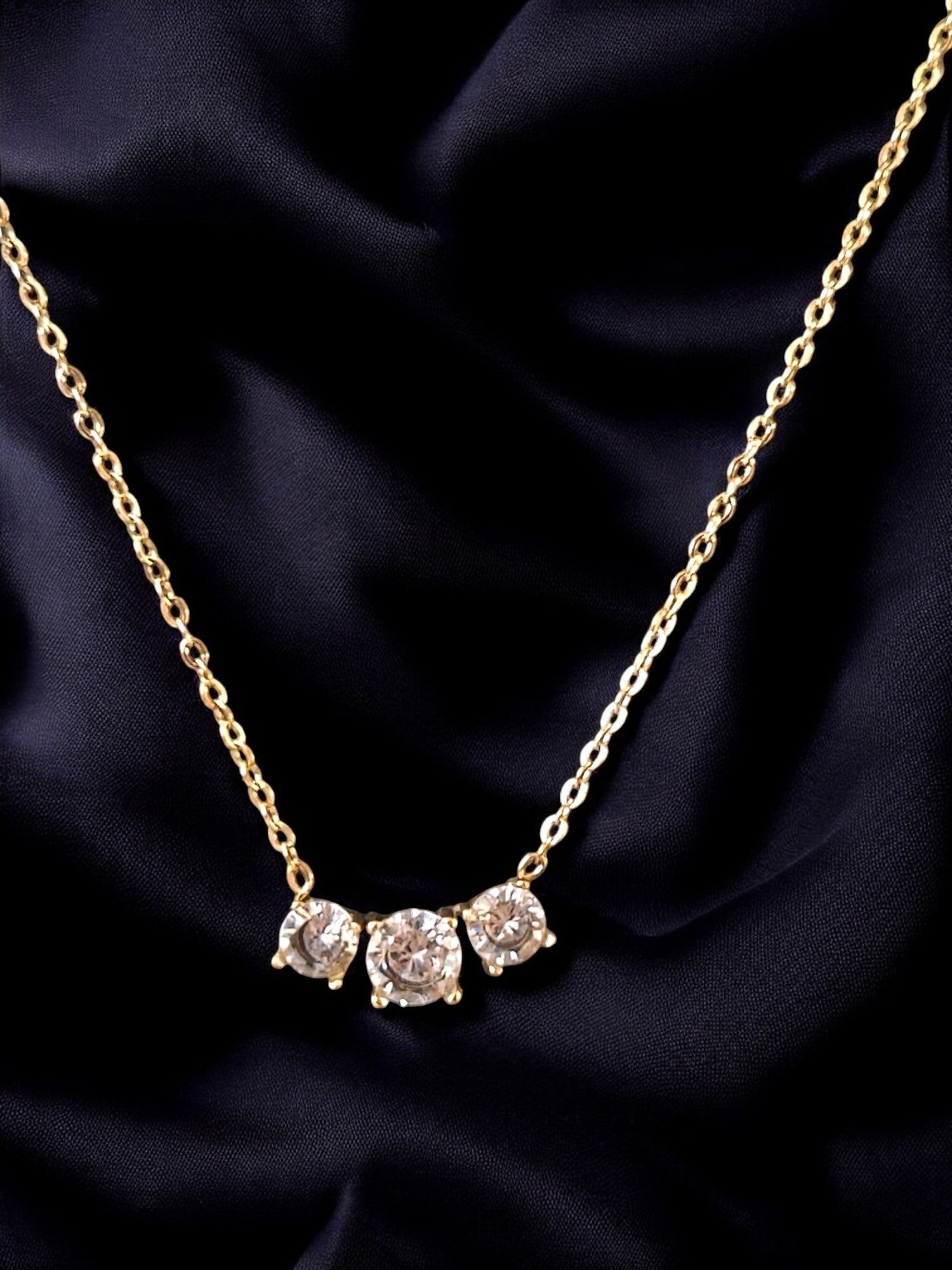 Description: Minimal yet magnetic — Triple Glow showcases three dainty diamond accents that shimmer subtly on the skin. A perfect blend of soft glam and everyday luxury, this chain elevates your look without saying a word.